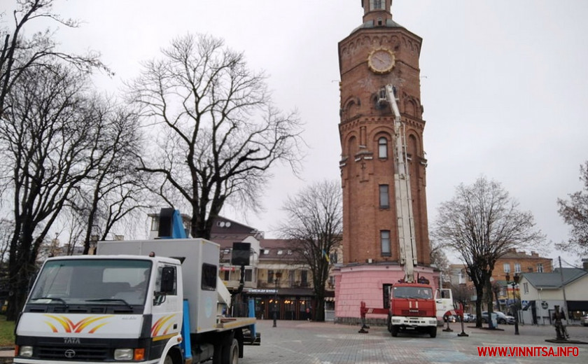 17 грудня, близько після 9 ранку, до Водонапірної Вежу у вінницькому сквері по вулиці Оводова заїжджає підйомний кран від «Міськсвітло». Кілька робочих роздивляються локації, звідки розпочнуть роботи.