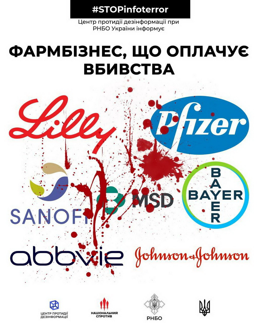Загалом у списку понад 100 міжнародних фармацевтичних компаній, які сплачують податки та сприяють придбанню агресором нових ракет і бомб, що вбивають населення України.