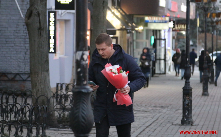 На вулицях міста можна зустріти святково вбраних вінничанок та чоловіків з букетами квітів, які поспішають до коханих.