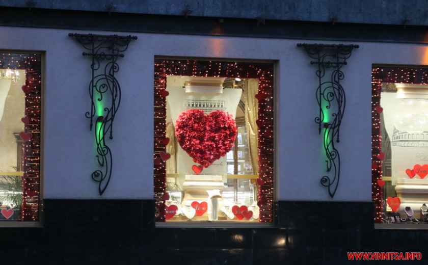 Вітрини магазинів прикрасили тематичними декораціями – червоними повітряними кульками та сердечками. А у одному із торгових центрів встановили дерево із ведмежатками.