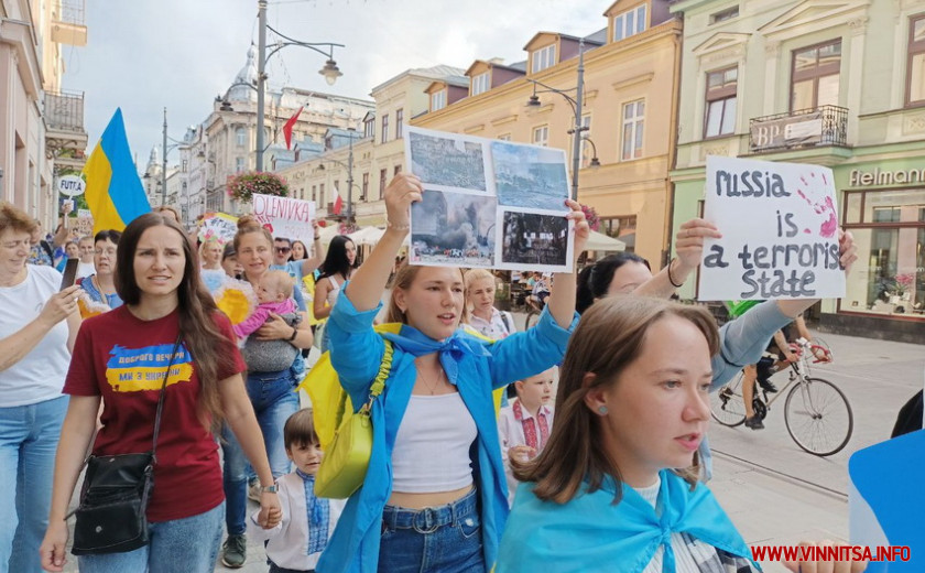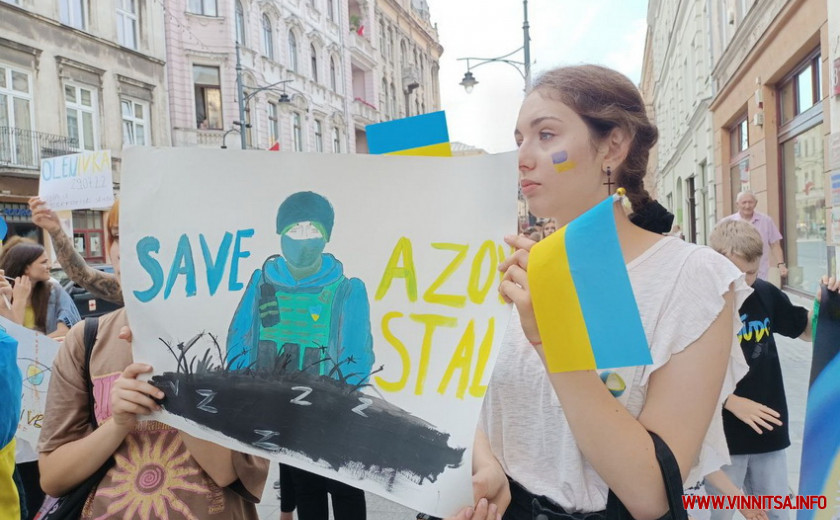 На центральній вулиці польського міста Лодзь українці вийшли на мітинг проти російського теракту здійсненого в колонії в Оленівці. Серед учасників акції і вінничани.