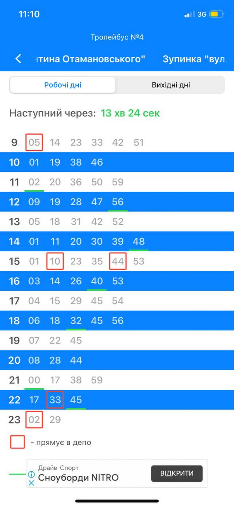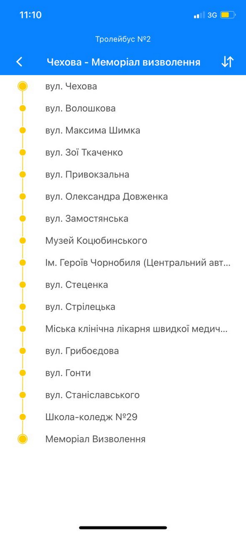 Додаток працює, коли в мобільному ввімкнений Інтернет. Якщо Інтернету немає, то показує останні завантаженні дані і дату, коли була синхронізація руху транспорту.