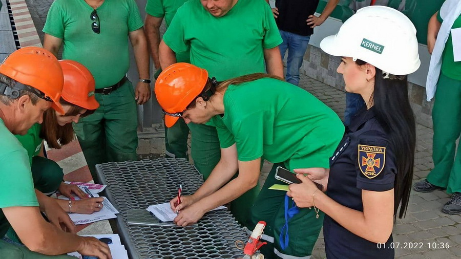 По завершенню практичної частини тренувань, для всіх працівників підприємства, фахівці ДСНС провели інструктаж щодо основних причин виникнення пожеж, також нагадали основний алгоритм дій під час сигналу «Увага всім!», виявлення вибухонебезпечних предметів і правил поведінки на воді влітку.