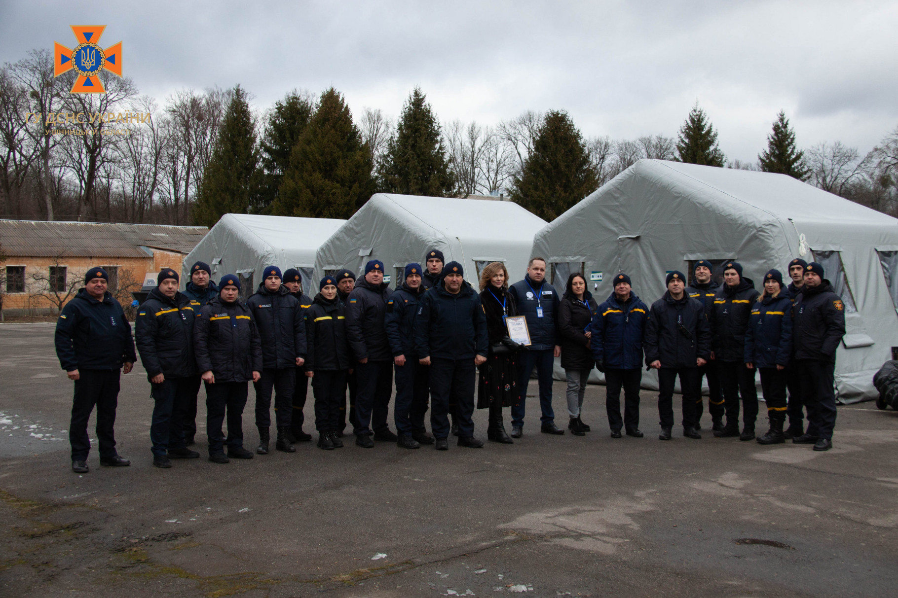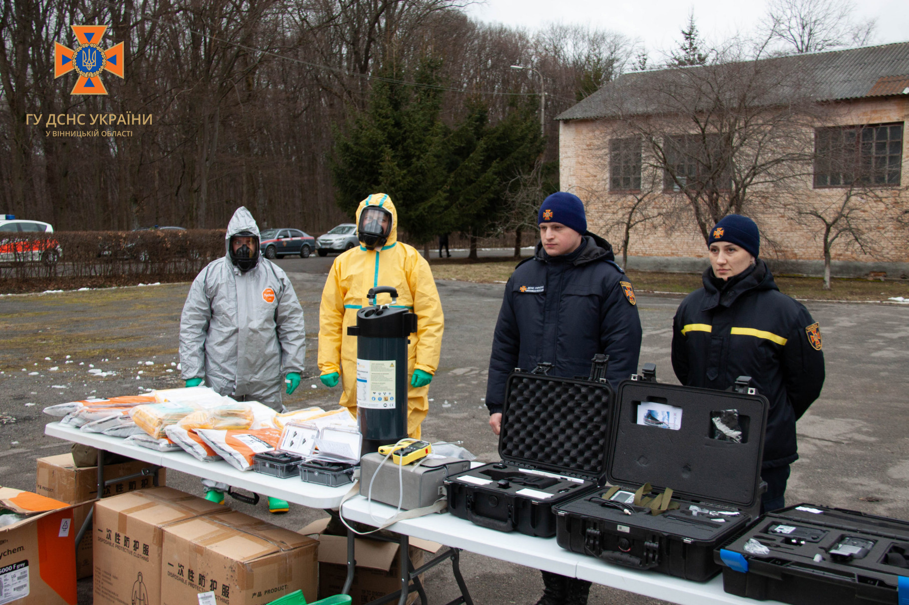 20 лютого вінницькі надзвичайники отримали благодійну допомогу від неурядової міжнародної французької організації ACTED, представники якої, передали для потреб гарнізону чотири сучасних пневмокаркасних намети, що призначені для використання рятувальними службами в польових умовах. Особливість палаток у тому, що їх розгортання можливо здійснити в найкоротші терміни – за 5-10 хвилин.