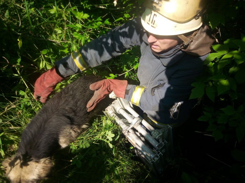 «О 8:49 до Служби порятунку “101” надійшло повідомлення про те, що на вул. Шевченка в м. Бершадь у яму впав пес. Прибувши до місця події, рятувальники ДПРЧ-16 за допомогою підручних засобів цілу та неушкоджену тварину витягли назовні», - повідомляється на сайті ДСНС.