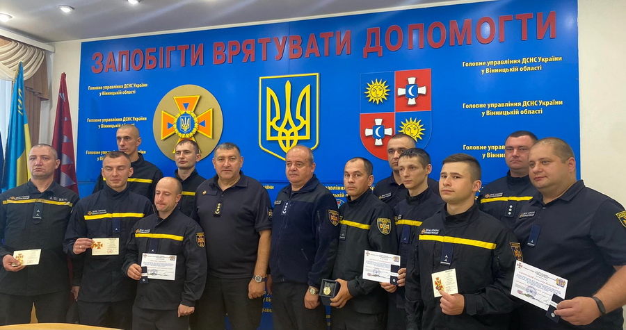 Нагрудний знак «За відвагу в надзвичайній ситуації» вручено одразу шістьом рятувальникам - Роману Байзану, Сергію Книшу, Олександру Супруну, Юрію Ткачуку, Василю Грущенку та Олександру Яворському.