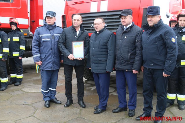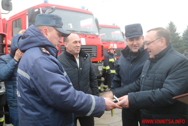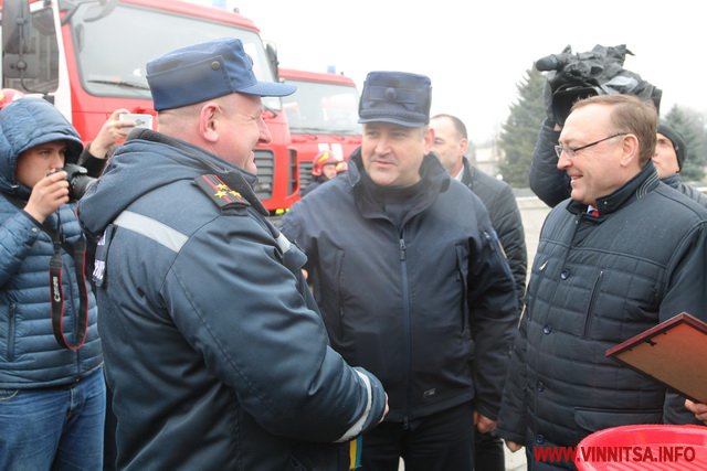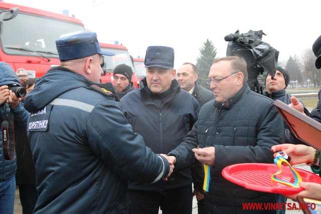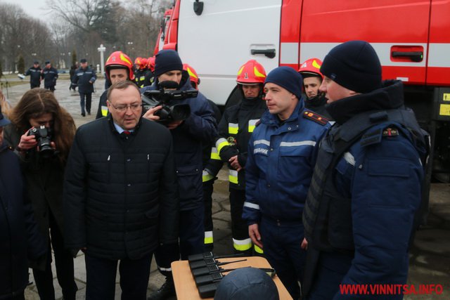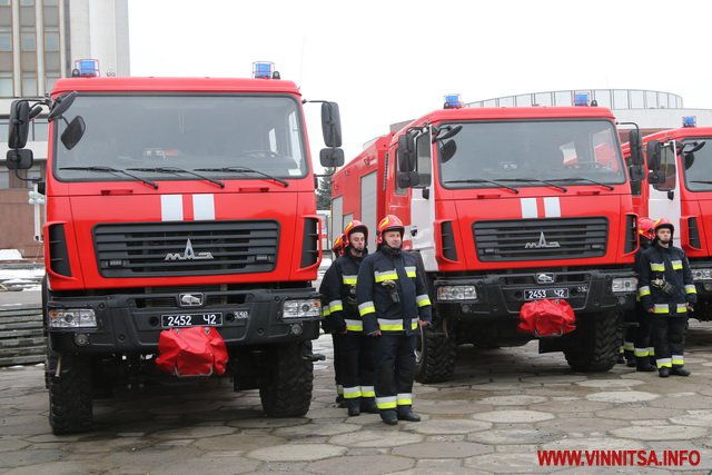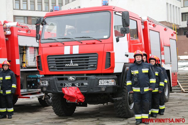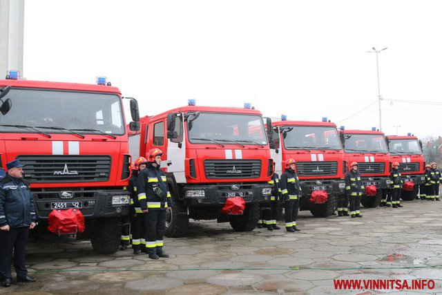 12 березня у Вінниці на площі Василя Стуса рятувальникам вручили 5 нових пожежно-рятувальних автомобілі марки «МАЗ». А також бронежилети, каски, радіостанції та прилад для діставання великих боєприпасів. Все обладнання коштує 24 мільйони.