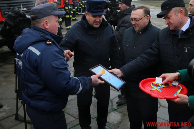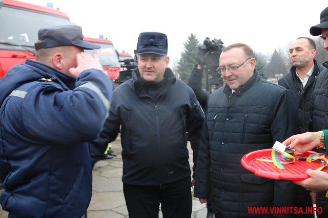 «Рівно рік назад 9 лютого ми отримали 5 автомобілів. А сьогодні ми знову отримали 5 автомобілів від Державної служби з надзвичайних ситуацій, ці краще оснащені від попередніх. Ця техніка буде розподілена з наступним розрахунком: два автомобіля будуть у Вінниці і три одиниці поновлять ресурс в Козятинському, Хмільницькому районах та в місті Гнівань.