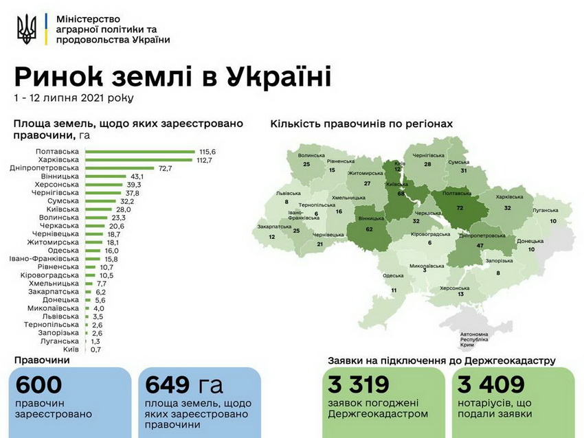 Станом на ранок 13 липня в Україні діє 600 земельних угод.