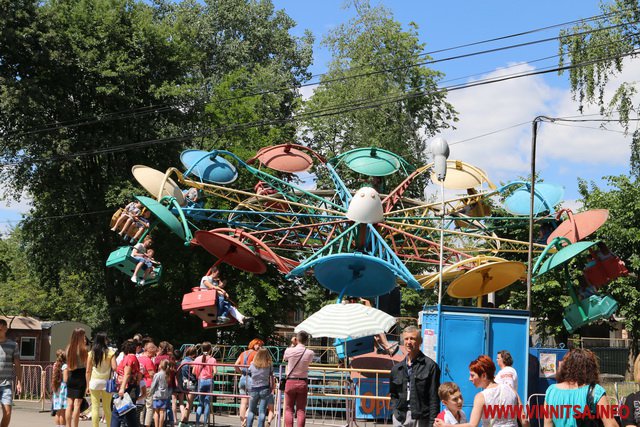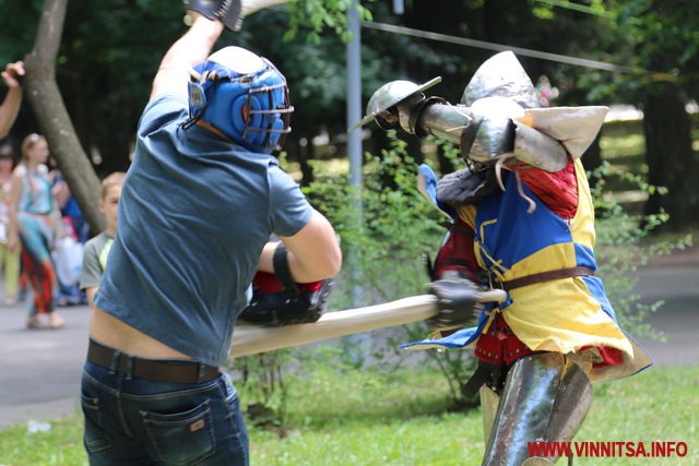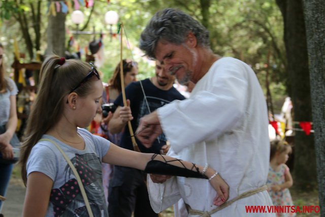 Люди з дітьми гуляють, відпочивають, фотографуються, беруть участь в різноманітних розвагах. Наприклад біля планетарію розгорнулось середньовічне містечко. Там можна і простріляти з луку, скуштувати вино від «монахів», подивитись середньовічні танці, і навіть побитись з воїном в облаштунках. Лише після «запеклої бійки» стало зрозуміло, що «воїн» – жінка…