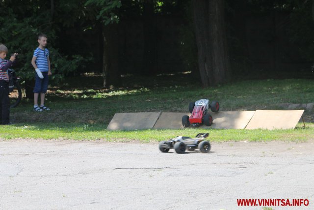 На Гастрольній площі дорослі і діти розважаються радіокерованими автівками.