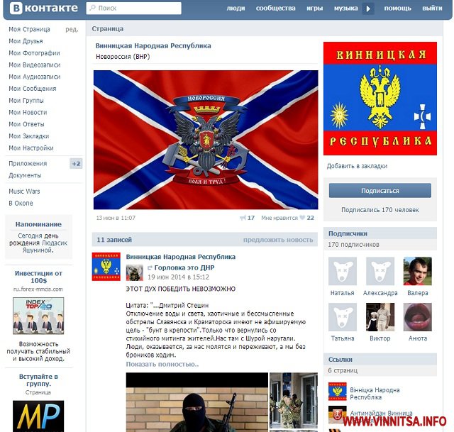 СБУ встановила особу вінничанина, який за допомогою мережі Інтернет закликав до зміни меж території та державного кордону України. Управлінням СБУ у Вінницькій області встановлено особу жителя обласного центру, який займався антиукраїнською агітацією у соціальних мережах та підбурював до створення так званої «Вінницької Народної Республіки».