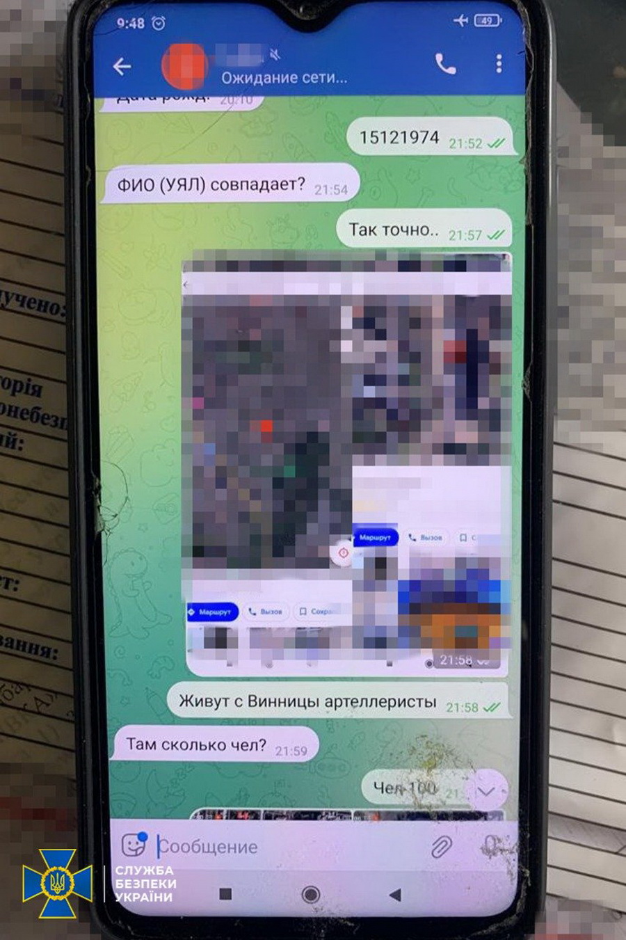 Крім того, в Телеграм-каналі встановлено переписки, де агент здає місця розташування вінницьких артилеристів.