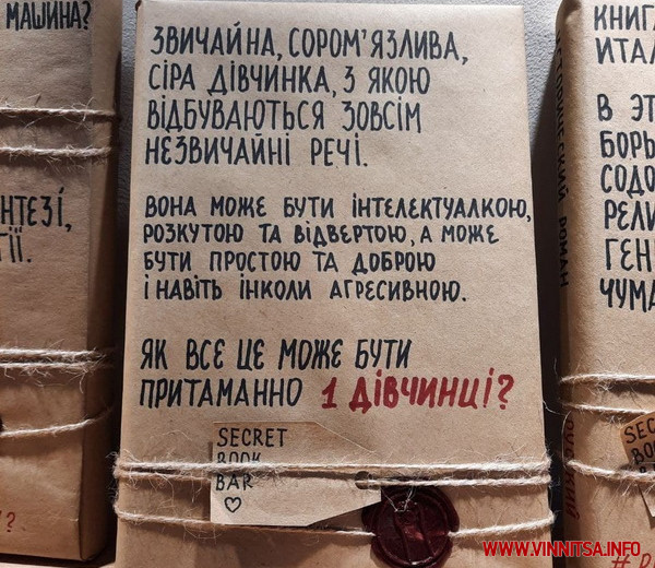 «Одна книга коштує 250 грн. Це книга для тих, хто хоче прочитати, але прагне обрати не по обкладинці, а по змісту. На кожну книгу є короткий опис та характеристика. Частіше такі книги беруть для подарунків, але розкуповують їх активно», - розповів журналістам Вінниця.info бариста закладу.