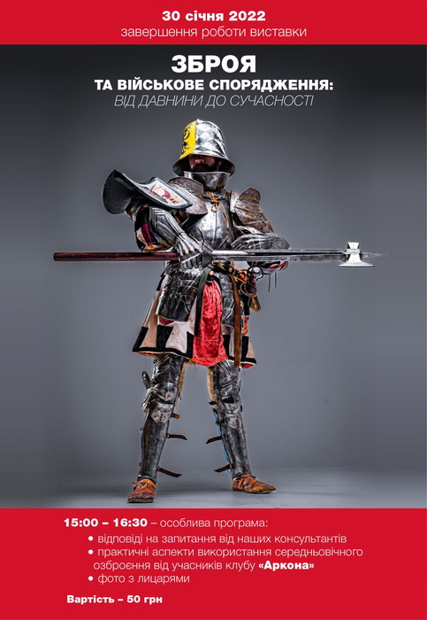 «На виставці ви зможете побачити унікальне старовинне озброєння, зокрема, комплекти обладунку італійського кірасира 17 ст. та польського крилатого гусара, екзотичну холодну та старовинну вогнепальну зброю з колекції Національний музей історії України. Отримати відповіді на запитання, щодо цікавих вам експонатів у наших консультантів - кураторів виставки Євген Тичук та Ольга Грабовська. А також поспілкуватись з представниками клубу «Аркона» щодо практичних аспектів використання середньовічного озброєння та зробити фото з лицарями», - зауважують у Вінницькому обласному краєзнавчому музеї, де представлять виставку.