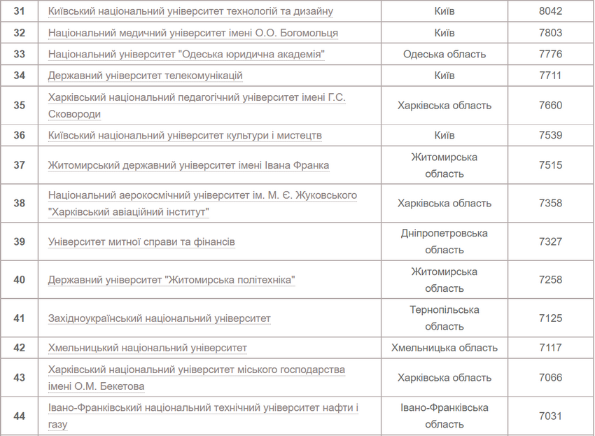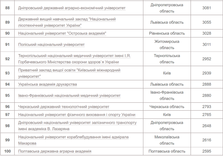 Донецький національний університет імені Василя Стуса на 56 місці. Подано 5143 заяв.