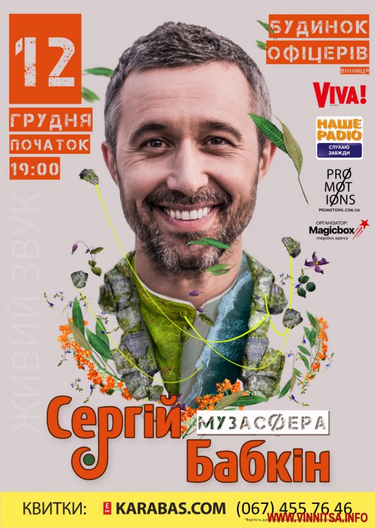 І нарешті 12 грудня - черга за Вінницею, де відбудеться сьомий концерт великого всеукраїнського туру артиста-душі Сергія Бабкіна! Півтори години справжньої музики, оголена душа на сцені та магія, яку можна відчути, лише перебуваючи на концерті - чекає на вас у наступну середу.