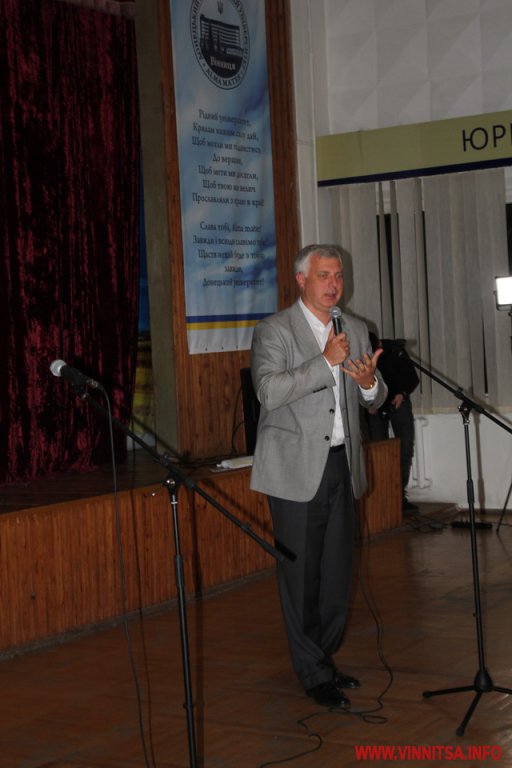 «Два роки тому я приїздив сюди на відкриття. Це була знакова подія для всієї України. Адже, завдяки переїзду Донецького університету у Вінницю, ми отримали досвід евакуації навчальних закладів. На сьогоднішній день вже переміщено 16 університетів та 10 академічних інститутів. Із універів, 15 з Донбасу та один з Криму. І всі вони переїздили саме по пройденим крокам ДонНУ.