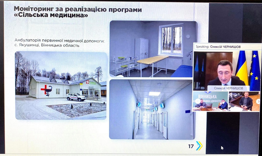 «На Вінниччині заплановано провести реконструкцію 10 приймальних відділень опорних закладів охорони здоров’я у госпітальних округах. З місцевих бюджетів для завершення робіт передбачено кошти у сумі 20,1 млн. грн., планується передбачити на найближчих сесіях місцевих рад ще 3,7 млн. грн. Сьогодні на 100% будівельна готовність першої черги відділень шести лікарень - Бершадської, Жмеринської, Калинівської, Тульчинської, Хмільницької та Ямпільської. Чотири лікарні ще в стадії ремонту: готовність Гайсинської – 98%, Вінницької – 90%, Могилів-Подільської – 91%, Козятинської – 78%», - зазначено в дописі.