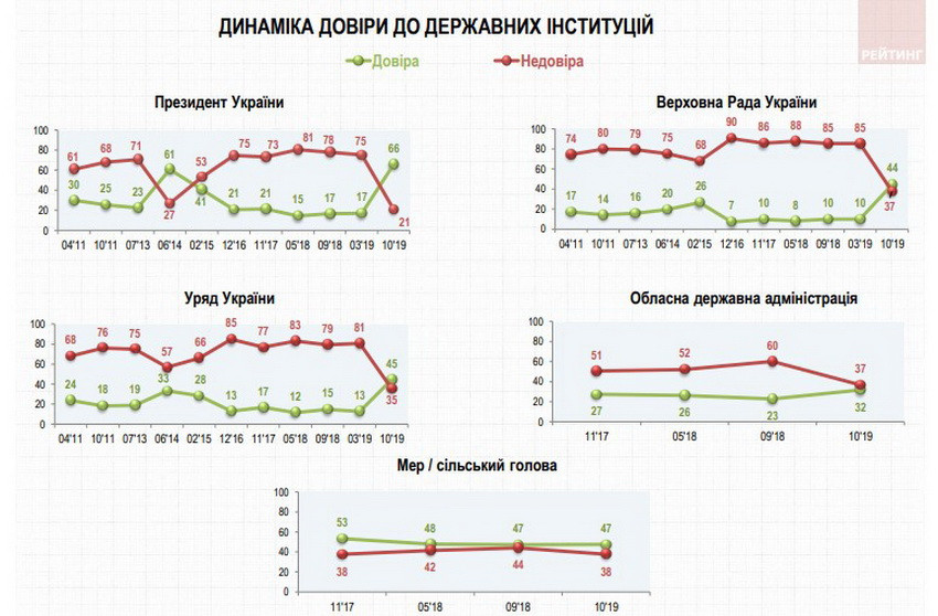 Соціологічною групою «Рейтинг» протягом 19-22 жовтня 2019 року проведено опитування про ситуацію в країні. Результати опитування «Рейтинг» надав редакції Вiнниця.info.