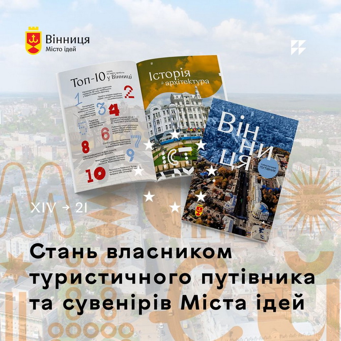Путівник Вінницею ― це перше туристичне друковане видання міста на цілих вісімдесят сторінок, упорядковане працівниками департаменту маркетингу міста та туризму Вінницької міської ради. Воно розповідає про історію Вінниці та її видатні постаті, місцеві туристичні об’єкти (архітектуру, мурали, скульптури, прогулянкові зони з фонтанами та водоймами), дозвілля (екскурсії, водні атракції й інші розваги), найяскравіші події, подільську кухню та вінницькі гастробренди (із вказівками, де це можна замовити чи придбати). Путівник містить інфографіку з розкладом місцевого транспорту й телефонами служб таксі, розділи з переліком найпопулярніших ресторанів, кав’ярень, пабів, готелів, гостелів і заміських комплексів.