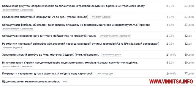 Для того, аби керівництво міста розглянуло звернення, воно має набрати 250 голосів. Зараз у найпопулярніших – близько 30 вподобань.