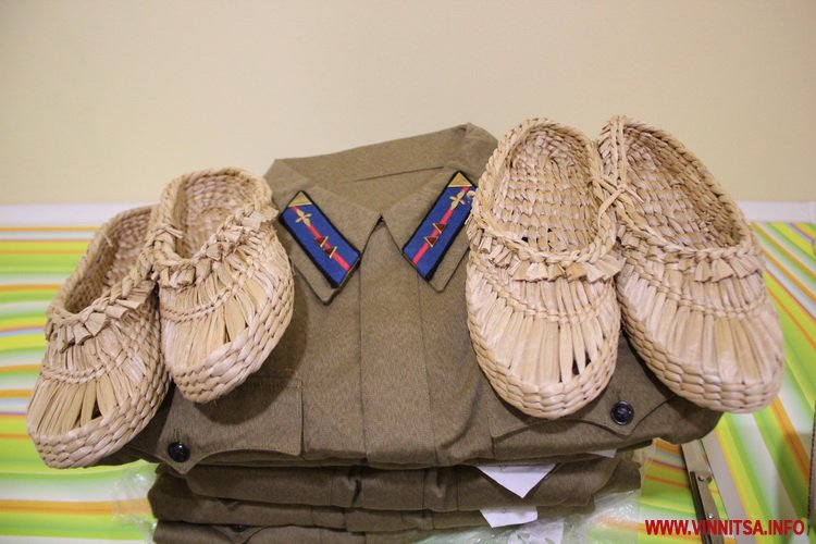 «Це гімнастерки та галіфе радянських солдата та сержанта повітряних сил зразка 1935 року», - пояснює. В ще в одній коробці надійшли лапті.