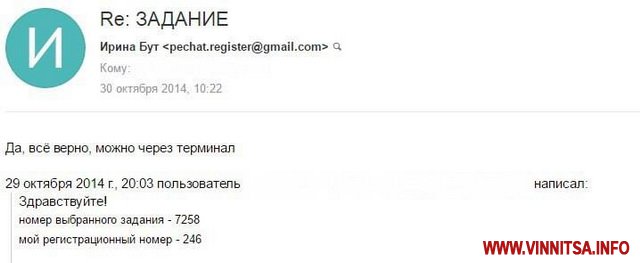 «Менеджер, з яким я переписувався зник… Я хотів трошки підзаробити, щоб були вільні кошти, окрім стипендії. На сайті Trud.UA знайшов оголошення «Робота для студентів в Інтернеті». Умови були прості: замовник повинен був мені скинути проскановані сторінки з книжки, а я їх мав просто набрати в «Word», та відправити замовнику. Оплату обіцяли достойну та одразу після відправки мною виконаного матеріалу. За все ми домовлялися перепискою. Потім мені написали, що потрібно заплатити страховий внесок, що начебто я гарантую, що не зникну з їхньою інформацією. Внесок залежав від того, скільки сторінок я беру в роботу. Я вибрав для початку невеликий текст, і ризикнув заплатити. Сума начебто невелика, але для мене відчутна – 85 грн. Після моєї оплати менеджер, з яким я переписувався, зник, на мої повідомлення – жодної реакції…», – розповів Євгеній.
