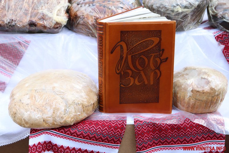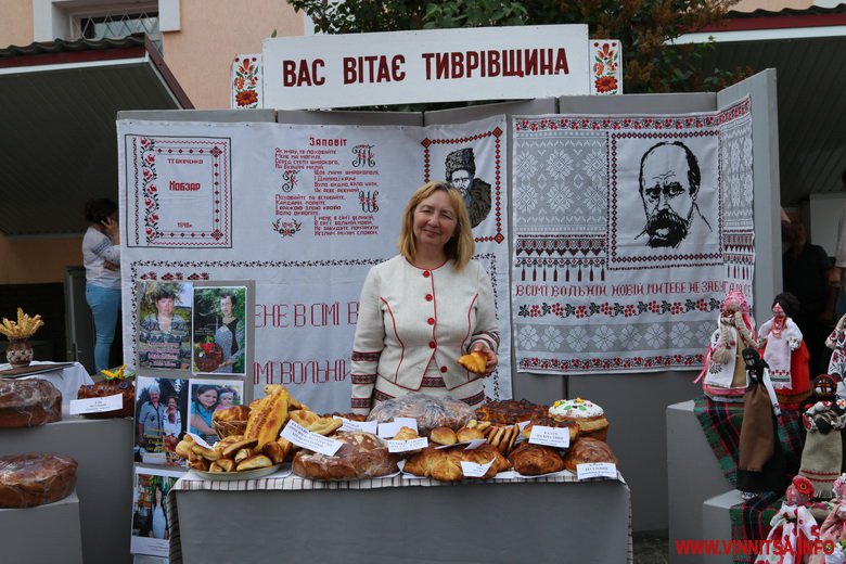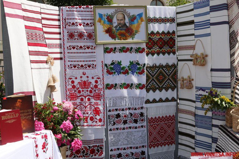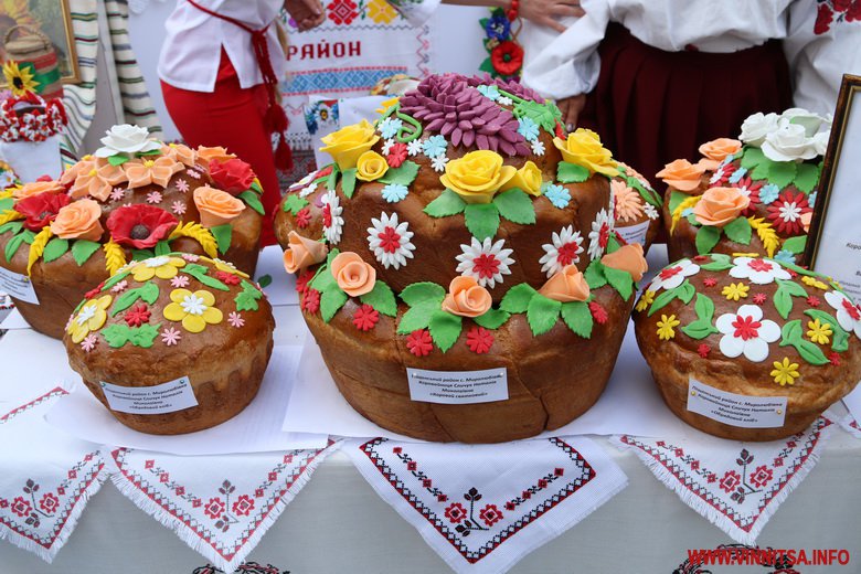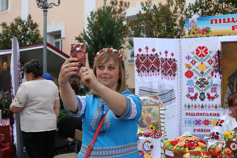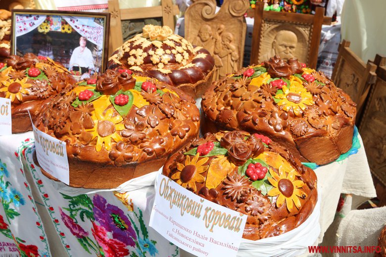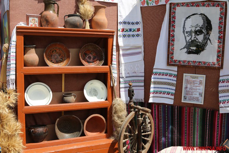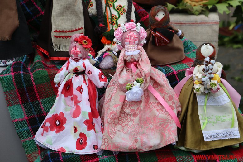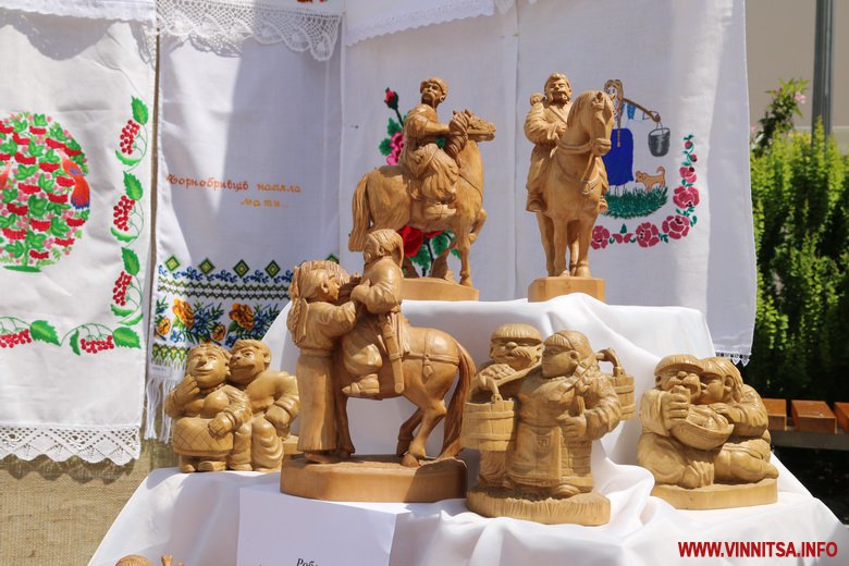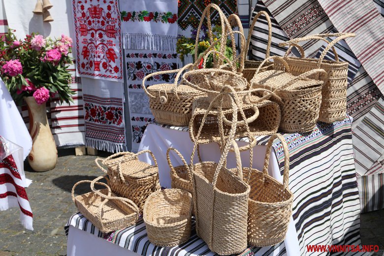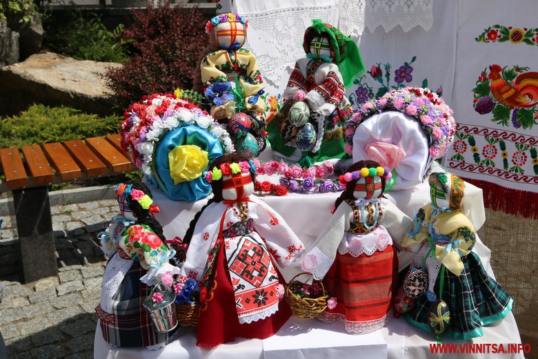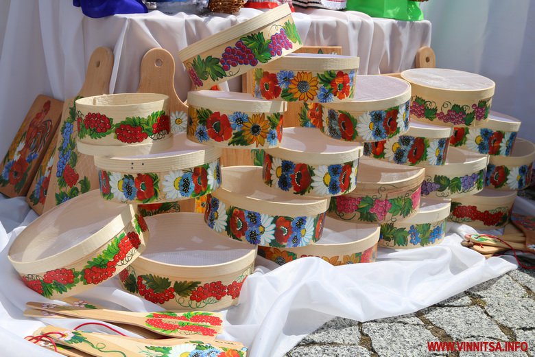У центрі міста розгорнули колоритний фестиваль. Представники різних районів Вінницької області презентують величезну кількість короваїв, вишитих рушників, ляльок-мотанок, виробів з дерева і соломи, картини.