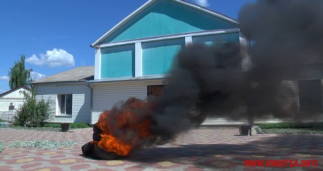 Поки Ковальчук розповідає, у дворі сільської ради бійці запалюють шини. Валить дим. До села приїздять керуючі районною поліцією.