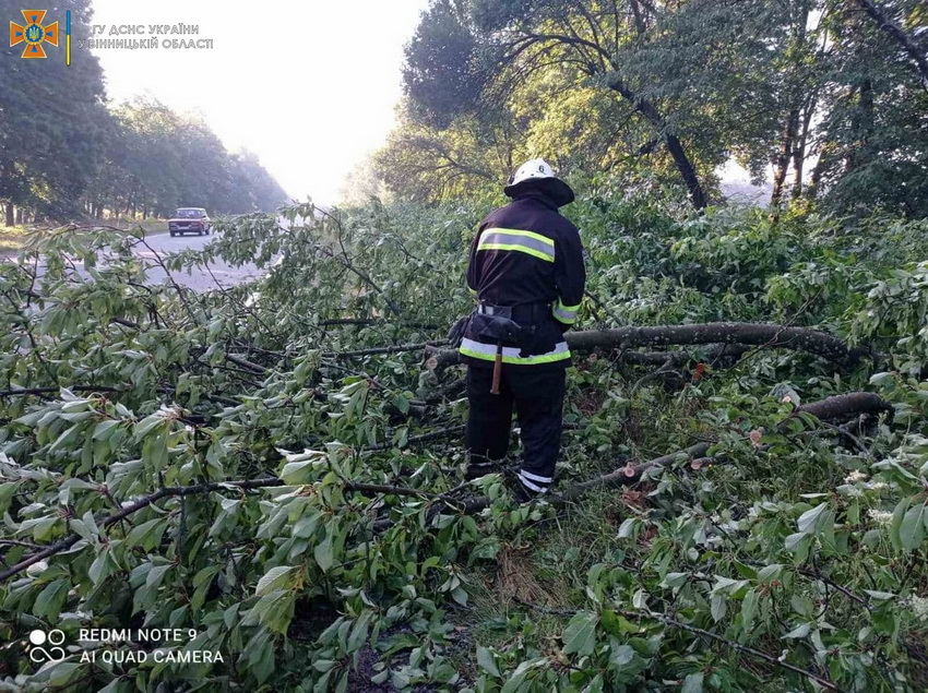 «Зокрема о 22:17 до Служби порятунку “101” надійшло повідомлення про те, що на автошляху Вінниця-Шпиків в с. Іскрівка Тиврівської територіальної громади внаслідок негоди на проїжджу частину впало дев'ять дерев. Прибувши на місце події особовий склад ДПРЧ-31 селища Тиврів розкряжував повалені дерева та прибирав гілля з автодороги. Тієї ж доби бійці ДСНС здійснили подібні виїзди в Гайсинському, Жмеринському, Вінницькому районах області та в м. Вінниці», - йдеться у повідомлені.