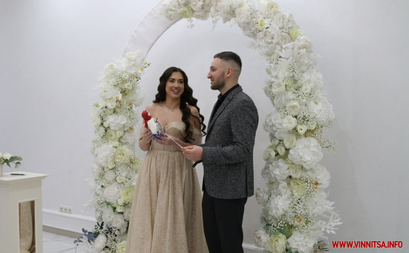 У Вінниці, у День усіх закоханих три пари вирішили побратися, скориставшись послугою «Шлюб за добу». Закохані говорять про свої почуття один одному, роблять пропозиції або створюють власну родину. Подружжя Михайла та Олени Кузьменко знайомі чотири роки. А побратися зажадали саме 14 лютого, адже вважають цю дату особливою у своїх стосунках. Своєю історією кохання новоспечена родина поділилась із кореспондентом Вінниця.info.