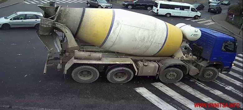 Камери ситуаційного центру виявили, як автомобіль-міксер «Volvo» забруднив дорожнє полотно. Бетонна суміш виливалася з переповненого міксер по вулиці Г.Успенського.