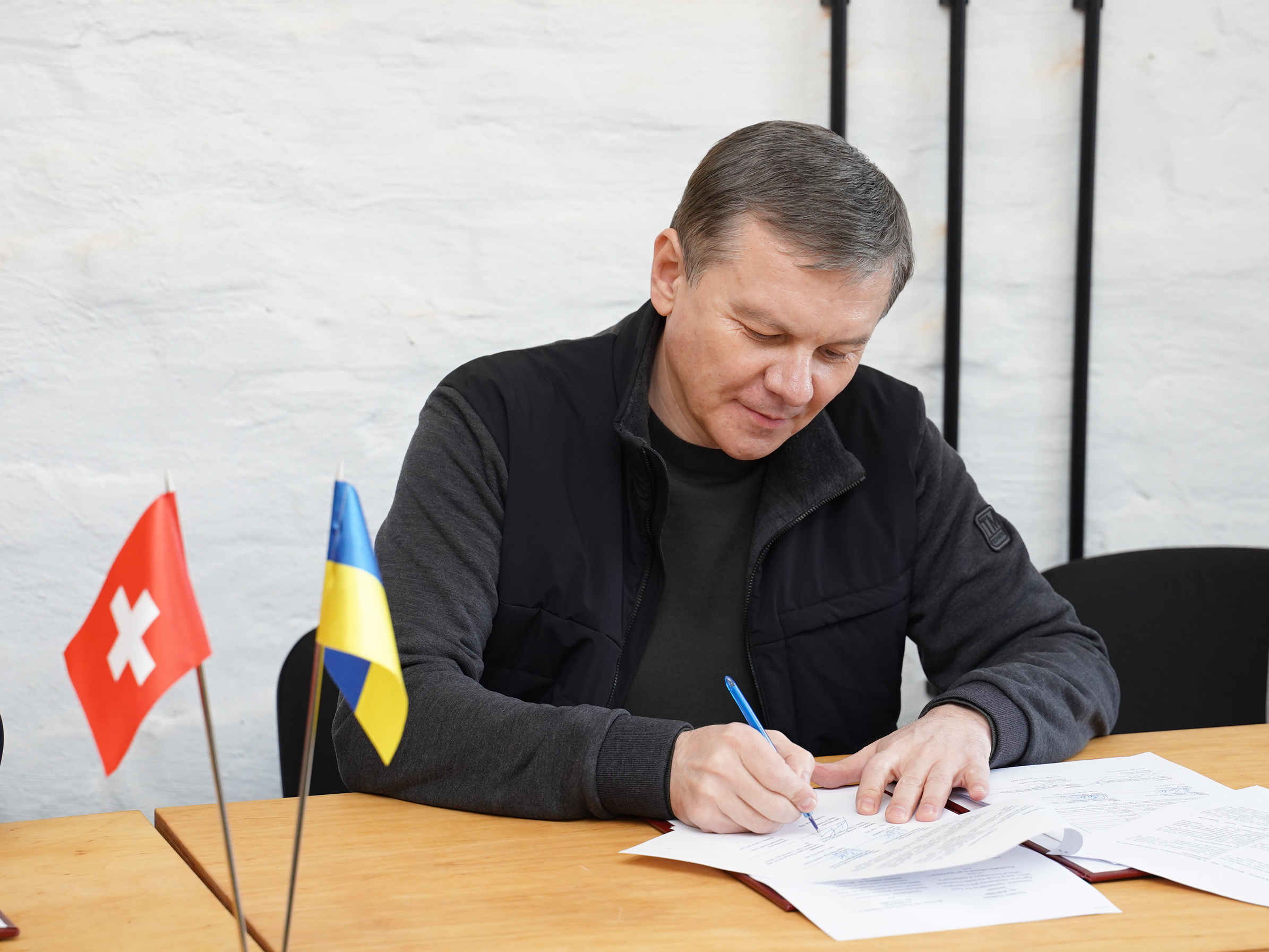 Передача гуманітарного вантажу супроводжувалась підписанням відповідного Договору. Вінницька міська рада та Швейцарська агенція з розвитку та співробітництва підписали документ про передачу гуманітарної допомоги.