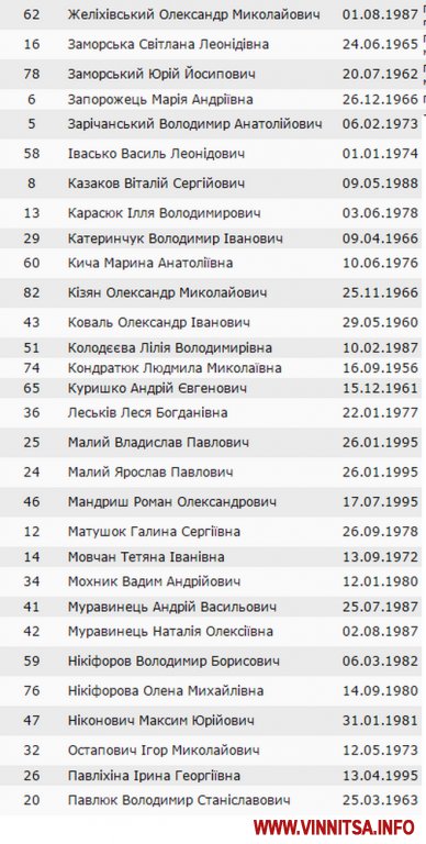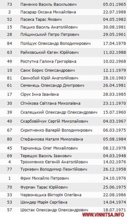Списки до Вінницької облрасної ради (округ, П.І.П. дата народження)
