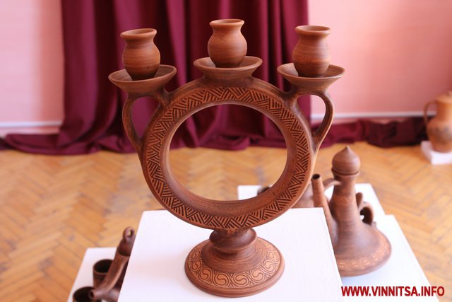В експозиційній залі представлено більше 100 унікальних виробів виготовлених з кераміки. Це підсвічники, глечики, чашки, миски з розписом…