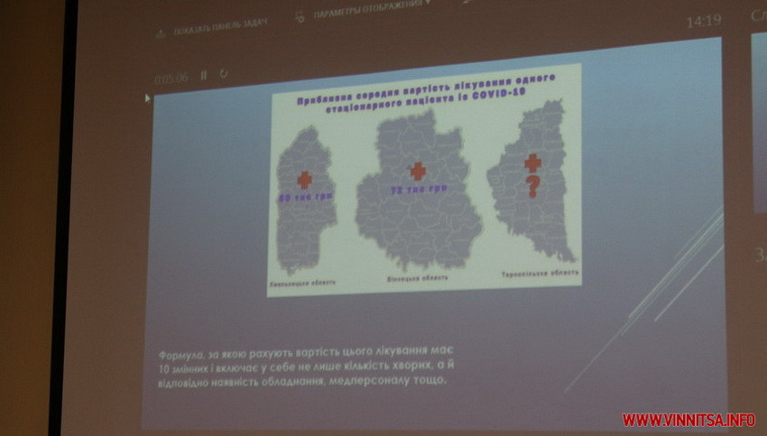 З березня по липень 2020 року фахівці трьох громадських організацій Вінниччини, Тернопільщини та Хмельниччини дізнавалися, скільки в Україні виділяли на лікування хворих на коронавірус в трьох областях та якою є вартість лікування одного хворого, якого лікують на стаціонарі. У Вінницькій області сума лікування одного хворого складає приблизно 72 тисячі гривень. Для порівняння, в Хмельницькій області – це приблизно 63 тисячі гривень.