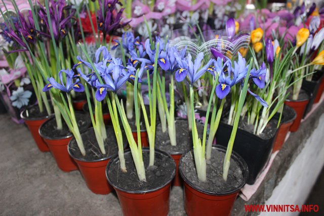 Ще одними з популярних весняних квітів є крокуси, іриси та гіацинти. Вони продаються в горщечках по 30 – 50 гривень.