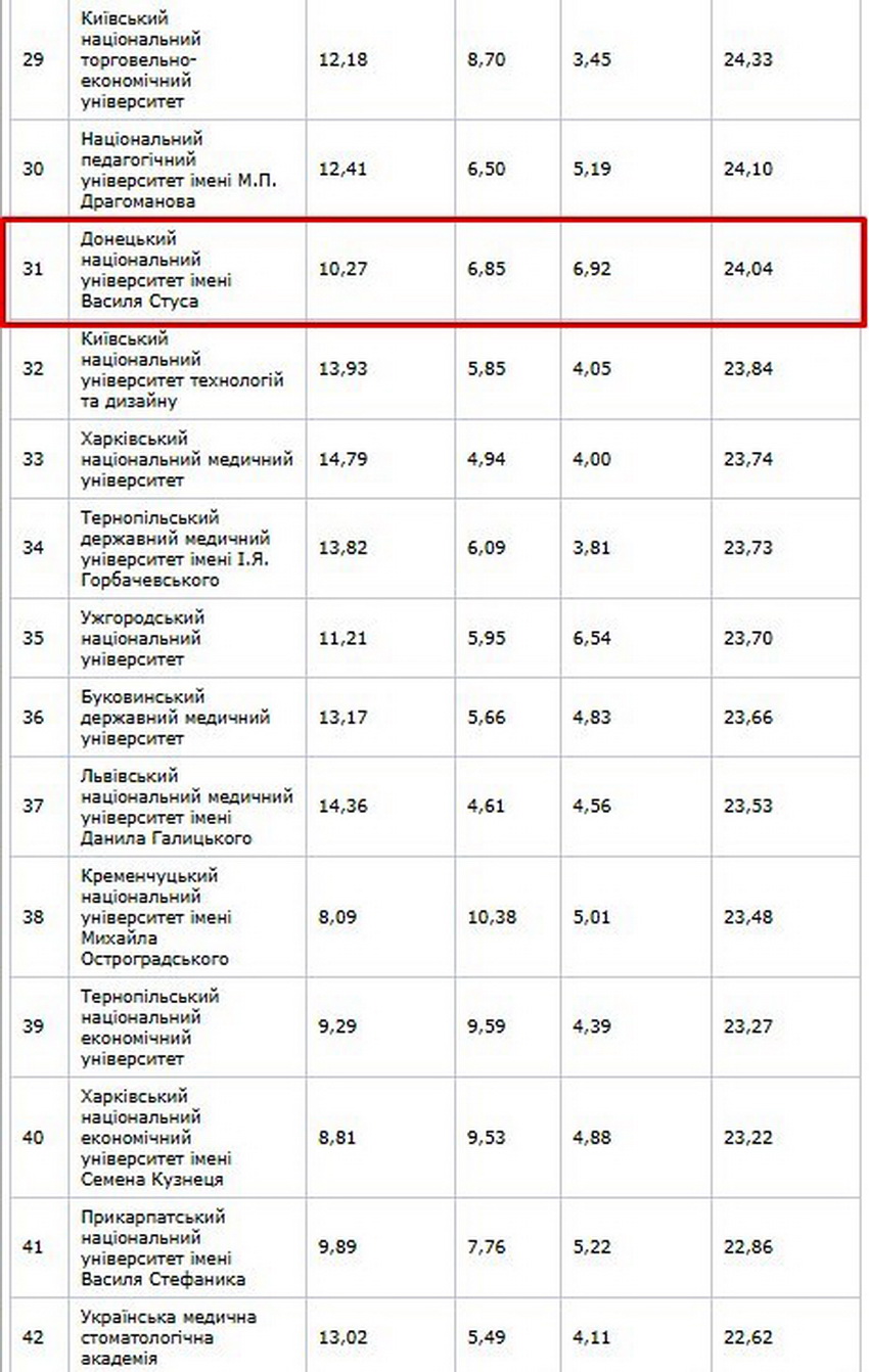 Донецький національний університет імені Василя Стуса – 31 місце.