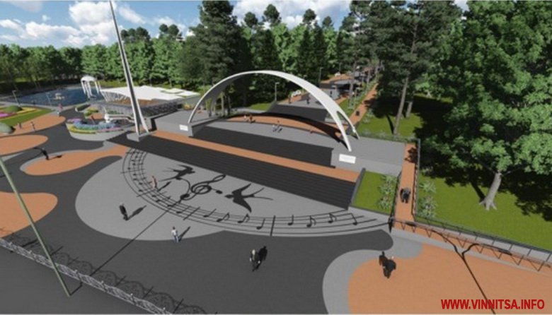 Під час реконструкції головного входу до парку передбачено розміщення озеленених територій та зони короткочасного відпочинку, облаштування пішохідної зони, нове покриття тротуарів, огородження озера, встановлення лавок та нових скульптур – «Закохані» та «Щедрик».