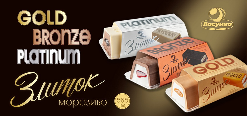 До уваги усі прихильники морозива ТМ «Ласунка» має для вас дещо особливе! Нове морозиво «Злиток» – цілих три смаки десерту у формі злитків! Обгортки кольору дорогоцінних металів та характерна вага 585 г ідеально відповідають назвам смаків нового морозива!
