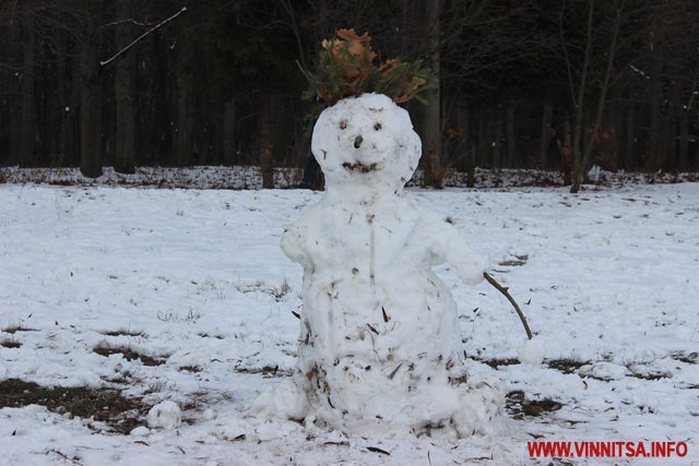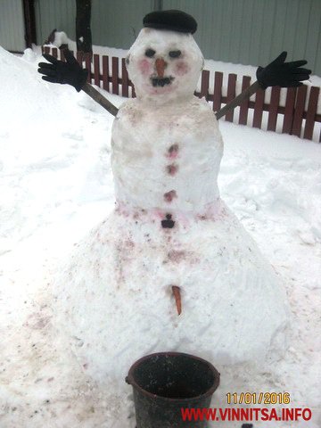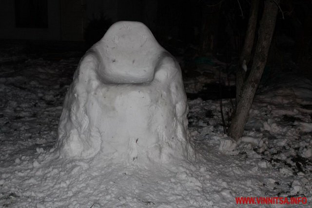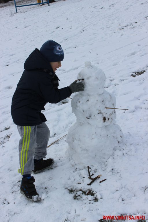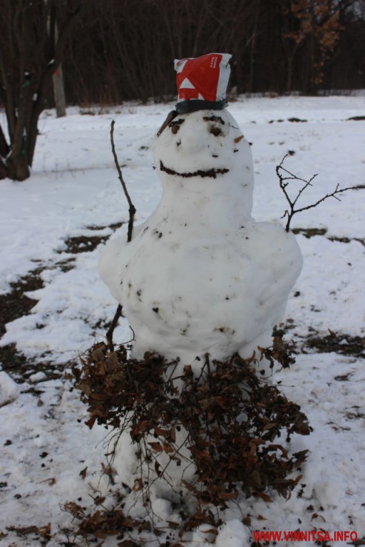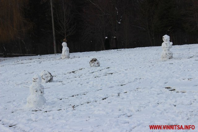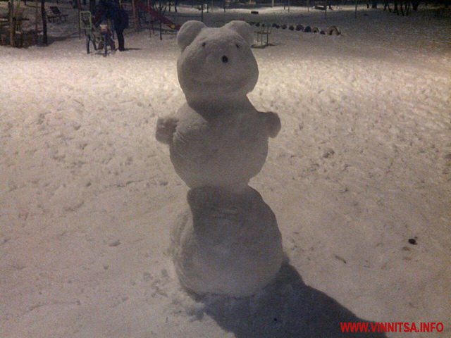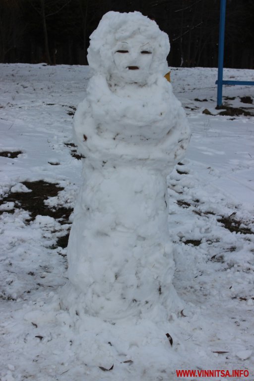 Зима у повному розпалі. На вулицях міста сніг, це ідеальна погода для сніжних розваг, як дітей так і для дорослих. Вінничани розважаючись, ліплять зі снігу різні скульптури.