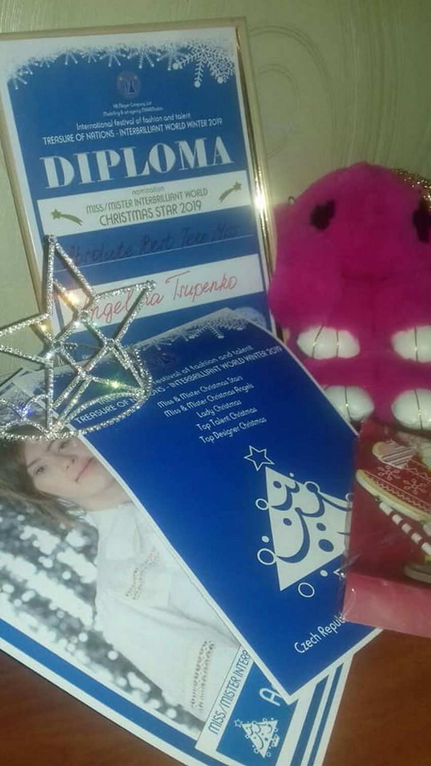 15-річна Ангеліна Цюпенко з Хмільника виборола перше місце у категорії Miss Christmas Star на міжнародному фестивалі моди та таланту «Treasure of nations – Interbrilliant World WINTER», який проходив у Чехії з 12 по 16 грудня.