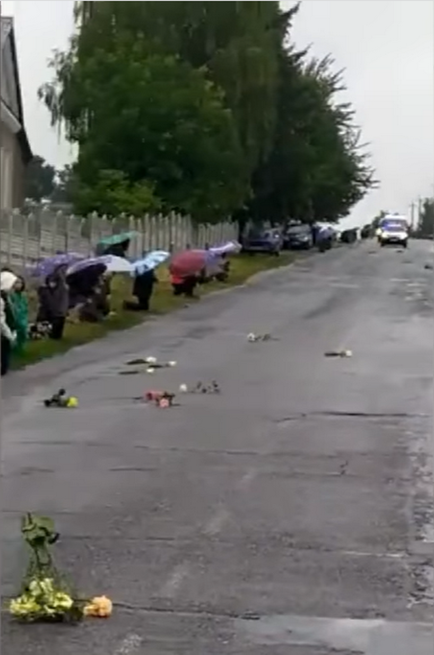 Сотні людей навколішках під дощем, зі сльозами і болем вчора зустріли воїна-захисника.