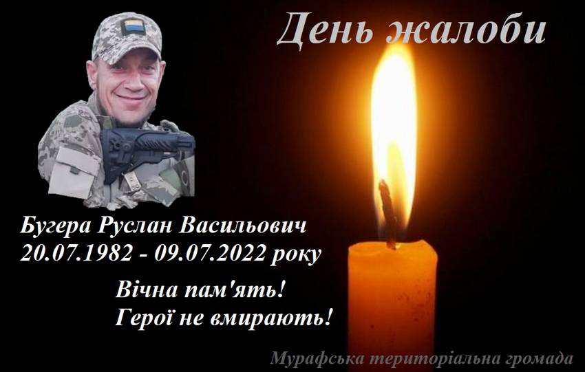 Захищаючи Україну від російських окупантів, 9 липня загинув Бугера Руслан Васильович. Йому назавжди залишиться 39-ть років… Військовослужбовець родом з села Клекотина Мурафської громади, що на Вінниччині.