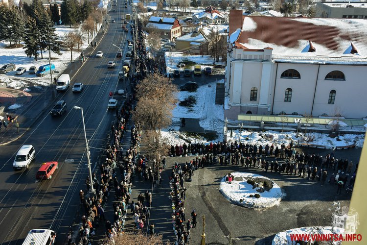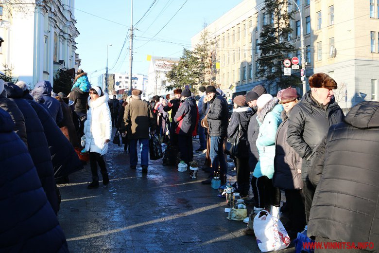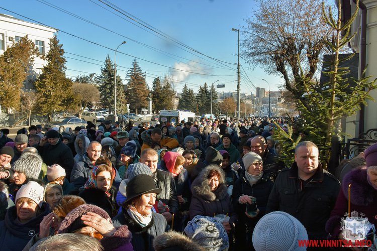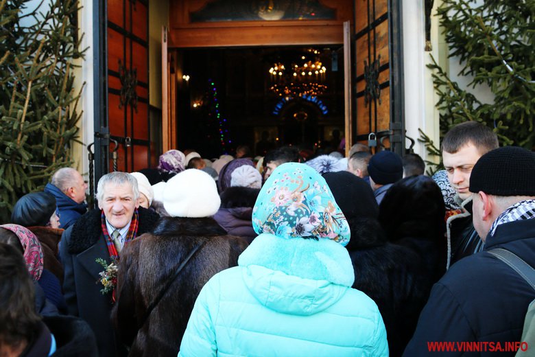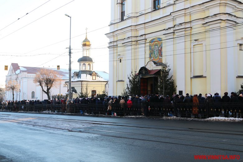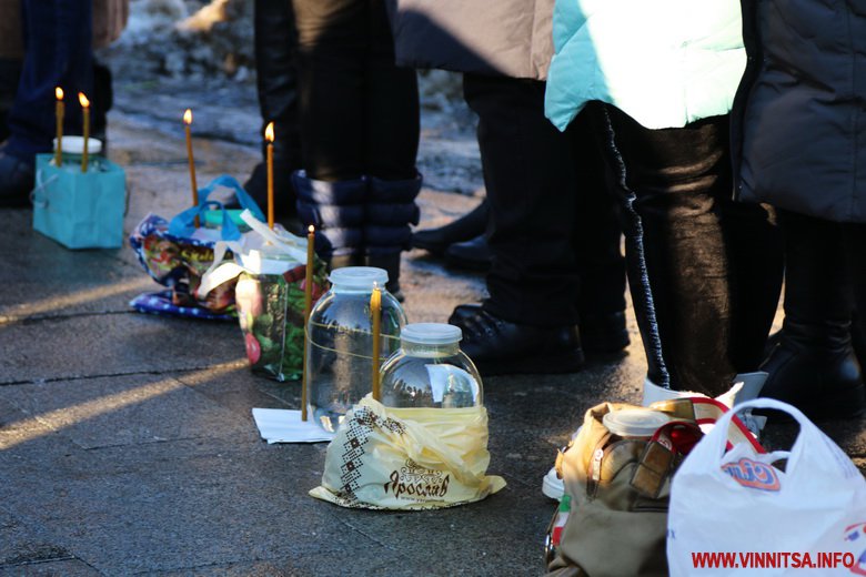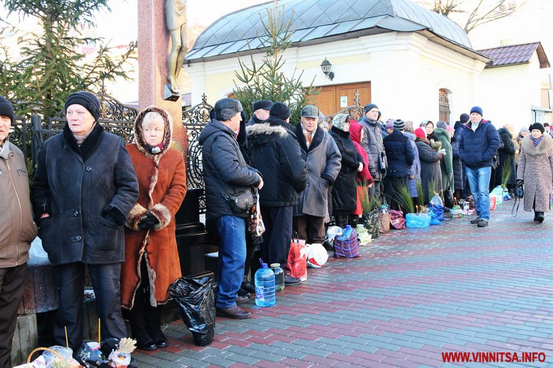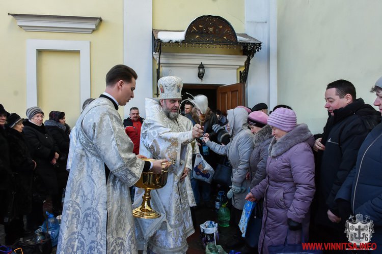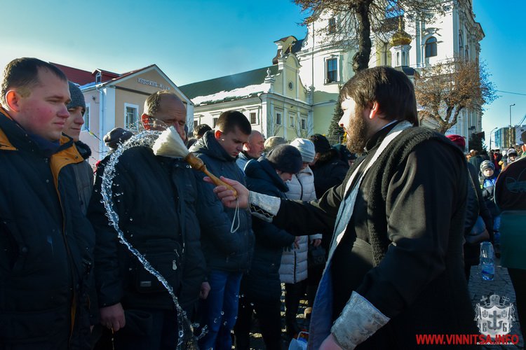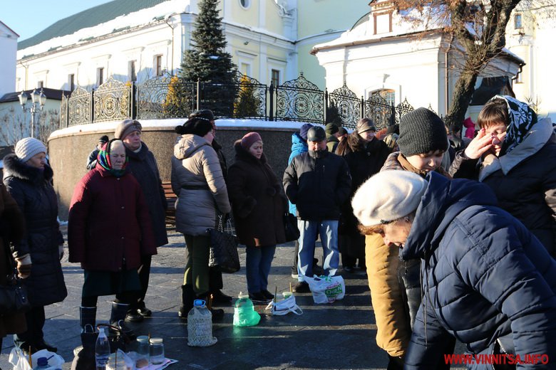 19 січня із самого ранку у Спасо-Преображенському соборі розпочалося богослужіння із освячення води. Сотні вінничан зібралися біля собору, прийшли із банками та бутлями води. Утворився живий коридор від собору, аж вниз до будівлі Державного архіву області. Біля «Варшави» вінничани купують сушені букети квітів.