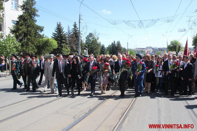 Городяни пройшли від площі Т. Шевченка до Меморіалу визволення. У натовпі майоріли сотні маків. Взяли участь у ході керівники області і міста, герої війни, АТО-шники, афганці та народні танцювальні колективи, що приїхали до Вінниці на фестиваль «Барвінкове кружало».