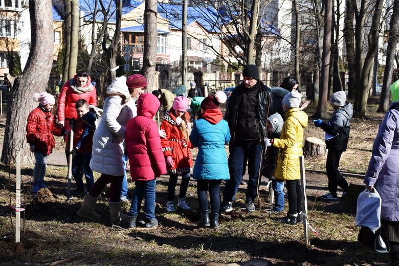 Більше тисячі саджанців дерев сьогодні висаджують у парку. Серед них – клени двох видів, дуб, граб звичайний та декоративний, ясен, липа, береза, лісова черешня для того, щоб прилітали птахи та освоювали територію, крім того ще надали вічнозелені сосни та ялини. Крім того, перед посадкою дерев, цілий тиждень йшла підготовка – вирізали аварійні дерева, зачищали територію від торішнього листя та гілля.