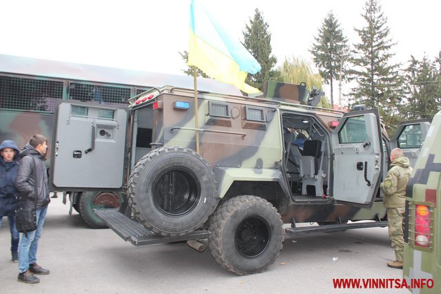 «Демонструємо техніку, яка виїжджала в зону АТО. От цей КРАЗ «Спартан» 2014 року випуску, новий броньовик розробки кременчуцького заводу. Він для розвідувальних задач роти спеціального призначення. Тричі на ньому їздили в зону конфлікту. Курсували по всій території військових дій», - розповів  розвідник Ярослав, прізвища не назвав.
