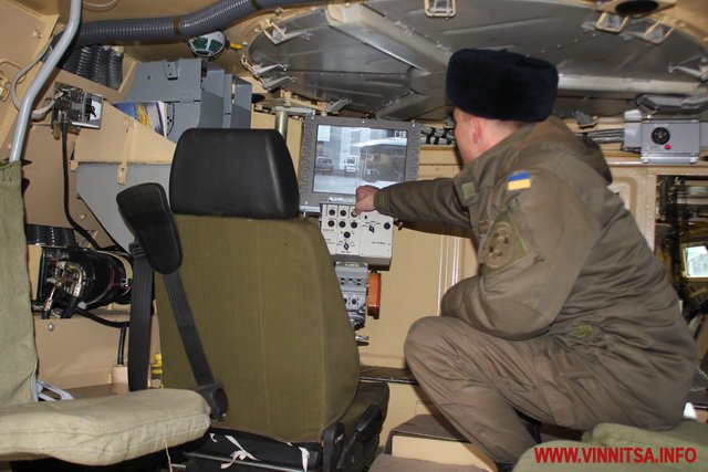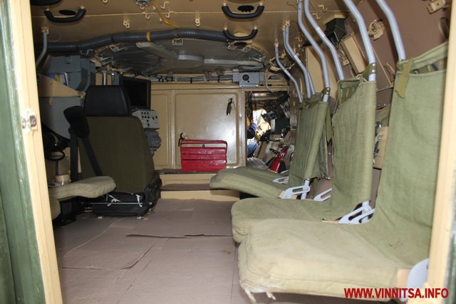 «Він для вогневої підтримки піхоти. Важить майже 20 тонн. Озброєна 30-ти міліметровою пушкою ПКТ, автоматичним гранатометом. Абсолютно на електроніці. В салоні сидіння можуть змінювати позиції, в залежності від задач. Оснащений планшетом яким має відомості про кількість боєприпасів. По його зображенню видно те,що ззовні, тому зручно вести вогонь. Він плаває. Розвиває швидкість до 120 кілометрів за годину. Лобова броня тримає 12 калібр. Дві таких же машини нині в зоні АТО. Цей екземпляр місяць тому приїхав до нас, але в будь-яку секунду готовий виконувати бойові задачі», - каже командир взводу роти оперативного призначення на БТР-ах Сергій.